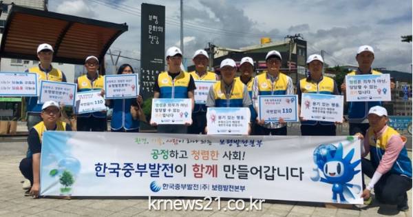 보령발전본부와 인재개발원의 청렴윤리봉사단원들은 30도가 넘는 무더운 날씨에도 불구하고, 준비해 간 청렴부채, 기념볼펜, 리플렛을 시민들에게 나눠주면서 중부발전의 청렴의지를 홍보하는 캠페인을 가졌다.