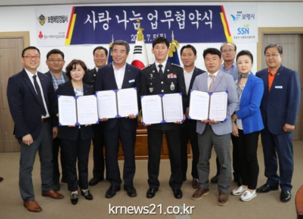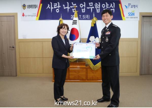 보령해양경찰서(서장 이진철)는 5일 오전 회의실에서 사랑 나눔 문화 확산을 위한 업무협약을 체결했다.
