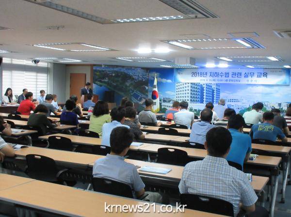 ▲ (사진=진주시청)진주시는 지난 30일 오후 3시 시청 문화강좌실에서 지하수의 무분별한 난개발 방지 및 지하수 수질 보호를 위해 지하수 담당 공무원 및 지하수 관련업체 등 100여명을 대상으로 지하수법 관련 실무교육을 실시했다.