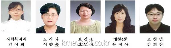 오천면 김희진 주무관은 지난 8~9월에 발생한 집중호우기간에 앞서 재난위험지역의 철저한 사전 점검 및 보강으로 주민 안전을 확보했고, 오천항의 해수면 상승 시 범람예상에 따른 재난예방활동을 적극 시행하며 낚시객 및 관광객, 주민들이 소중한 생명과 재산을 보호했으며, 주민의 생활과 밀접한 배수로 정비, 마을안길 포장 등 주민숙원사업도 항상 밝은 모습으로 추진해온 공로로 친절공무원으로 선정됐다.