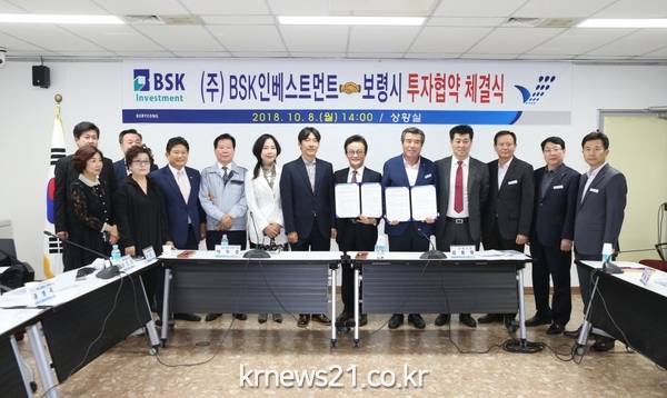 보령시는 8일 오후 시청 상황실에서 김동일 시장과 BSK(주) 인베스트먼트 박두호 회장, 투자를 계획하고 있는 3개 회사(㈜라스코, ㈜에스지앤테크, ㈜뉴페이스원) 대표 등 관계자가 참석한 가운데 기업 투자 유치 업무협약을 체결했다.