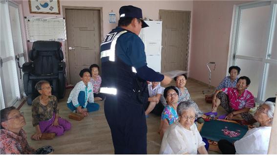 정읍경찰서(서장 신일섭) 감곡파출소(소장 김용겸)는 22(목)감곡면 원삼마을 노인회관을 방문, 어르신을 대상으로 범죄취약장소, 집중순찰지점, 순찰희망 시간대, 최근 지속적으로 발생하는 보이스피싱 대처방법에 대하여 홍보활동을 전개하였다.