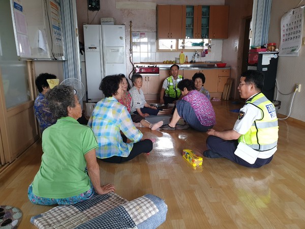 특히, 정읍시에서 발생한 교통사망사고는 17년 1월부터 19년 8월 30일까지 3년간 52명이었는데 그 중 노인사망자가 32명 61.5%를 차지하고 있어 이에 대응하기 위해 교통관리계 소속 경찰관이 순찰 근무 중 오전, 오후 각 마을에 방문하여 어르신들의 눈높이에 맞춰 교통사고 예방 교육을 실시하고 있다.