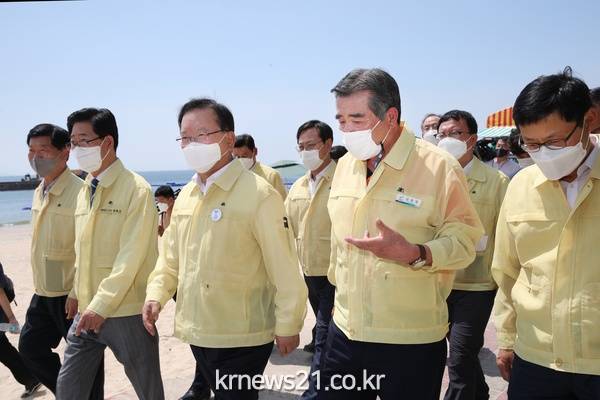 20일 대천해수욕장을 찾은 김부겸 국무총리는 해수욕장 검역소의 방역시스템을 둘러보고 이 같이 말했다.