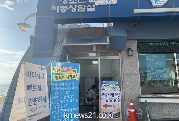 위기청소년 발굴 및 보호를 위해 대천해수욕장 노을광장에 설치된 청소년 이동상담실은 이용객이 많은 7~8월 약 2개월 동안 오전 10시부터 오후 9시까지 운영한다.