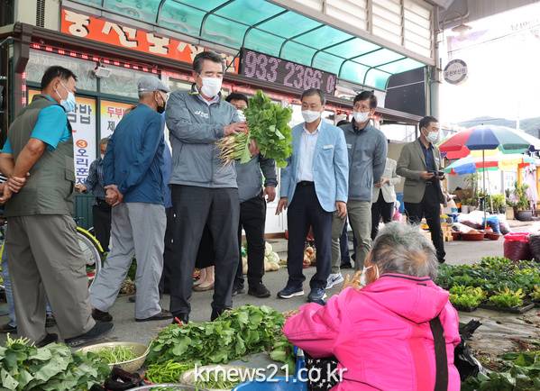 또한 제수용품 등 명절 장을 보러 나온 시민들과도 인사를 나누며 전통시장을 애용해 줄 것을 권장하고 가족과 함께 풍요로운 명절을 보내길 바라는 덕담도 나눴다.