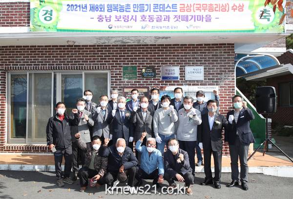 보령시는 5일 천북면 학성2리 호동골과 젓떼기마을에서 제8회 행복농촌만들기 콘테스트 금상 수상을 기념하는 현판 제막식을 가졌다.