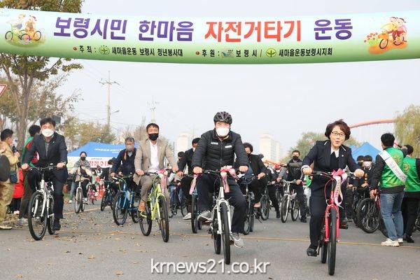 보령시는 시민의 자전거 이용을 생활화하고 쾌적한 도시환경 조성을 위해 20일 대천 천변에서 시민 400여 명이 참여한 가운데 ‘한마음 자전거 타기 행사’를 개최했다고 밝혔다.
