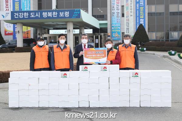 보령시는 14일 시청광장에서 김동일 시장과 김경석 전국한우협회 보령시지부장 등 관계자가 참석한 가운데 이웃사랑 후원물품 전달식을 가졌다고 밝혔다.
