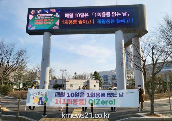 특히 전북도청 네거리에서는 출근길 시민들을 대상으로 1회용품 줄이기 거리 홍보와 함께 대형 전광판을 통해 1회용품 없는 날 참여를 유도했다.