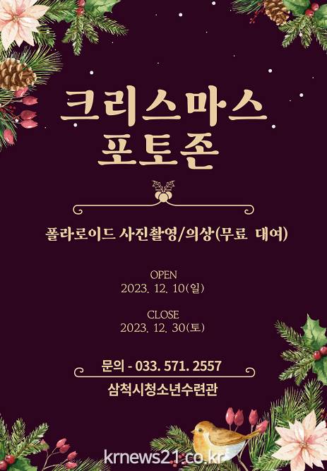 ▲ 사진=강원도 삼척시삼척시청소년수련관은 성탄절을 맞이해 따뜻한 연말 분위기 조성을 위해 오는 12월 10일부터 12월 30일까지 수련관 1층 로비에서 크리스마스 포토존을 운영한다.