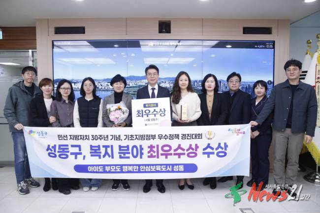서울 성동구(구청장 정원오)가 대한민국시장‧군수‧구청장협의회가 개최한 ‘2025 기초지방정부 우수정책 경진대회’에서 복지 분야 최우수상을 수상했다고 밝혔다.
