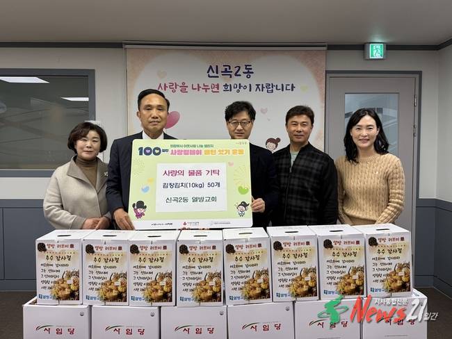 의정부시 신곡2동주민센터(동장 이상현)는 11월 20일 의정부열방교회(목사 이승재)가 취약계층을 위해 김장김치 50상자(10kg 단위)를 기탁했다고 밝혔다.