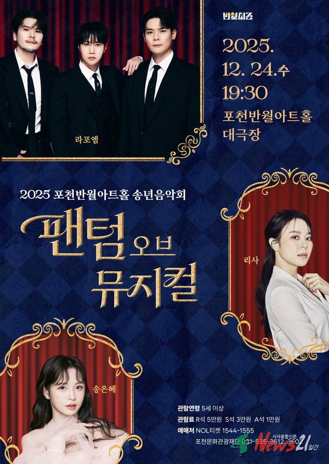 이번 송년음악회는 한 해를 마무리하며 시민들에게 감동적인 음악 경험을 선사하기 위해 마련된 공연으로, 국내 최정상 아티스트들이 포천반월아트홀 무대에서 다양한 뮤지컬 명곡과 대중음악을 선보일 예정이다.