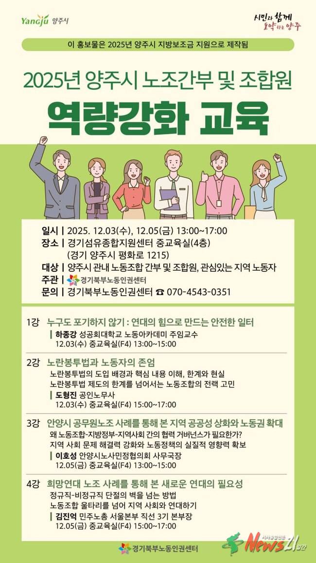 ▲ 사진=양주양주시가 관내 노동조합을 대상으로 ‘2025년 노조 간부 및 조합원 역량 강화교육’을 진행한다.