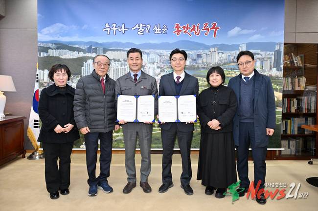 (뉴스21일간/노유림기자)=울산 중구(구청장 김영길)와 울산신광교회(담임목사 배홍근)가 12월 3일 오후 3시 30분 중구청 구청장실에서 부설주차장 무료 개방 협약을 체결했다.