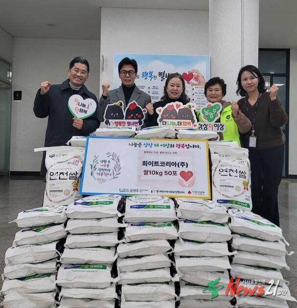 ▲ 사진=남양주시남양주시(시장 주광덕)는 화이트코리아㈜(대표이사 신정)가 지난 12월 3일 별내면 지역사회보장협의체(위원장 이제복)에 관내 취약가구 지원을 위한 10kg 쌀 50포를 후원했다고 밝혔다.