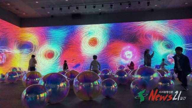 네 개의 포구는 전시를 통해 각각 고유의 빛과 감각으로 재탄생했다. 민물과 바다가 만나 만물이 조화를 이루던 전류리 포구는 찬란한 생명의 그래픽으로, 거센 물살과 파도 앞에서 자연의 겸손을 상기시키는 조강 포구는 깊고 푸른 빛으로 구현돼 눈길을 끌었다. 활발한 무역과 풍요의 시간을 품었던 강령 포구는 생동하는 디지털의 물결로, 침략과 전쟁의 아픔을 겪은 갑곶나루는 강렬한 붉은 색채의 추상 그래픽으로 재해석됐다.