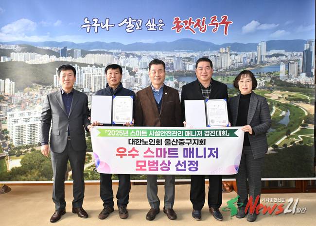 (뉴스21일간/노유림기자)=대한노인회 울산중구지회(지회장 최현만)에서 운영하는 ‘노인일자리 역량활용사업단’ 참여자 2명이 국토안전관리원과 한국노인인력개발원이 공동 주관하는 ‘2025년 스마트 시설안전관리 매니저 경진대회’에서 ‘우수 스마트 매니저’로 선정됐다.