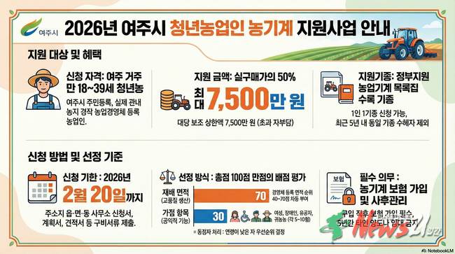 ▲ 사진=여주시 여주시는 청년농업인의 안정적인 영농 정착과 경영 기반 강화를 위해 「2026년 청년농업인 농기계 지원사업」을 추진한다.