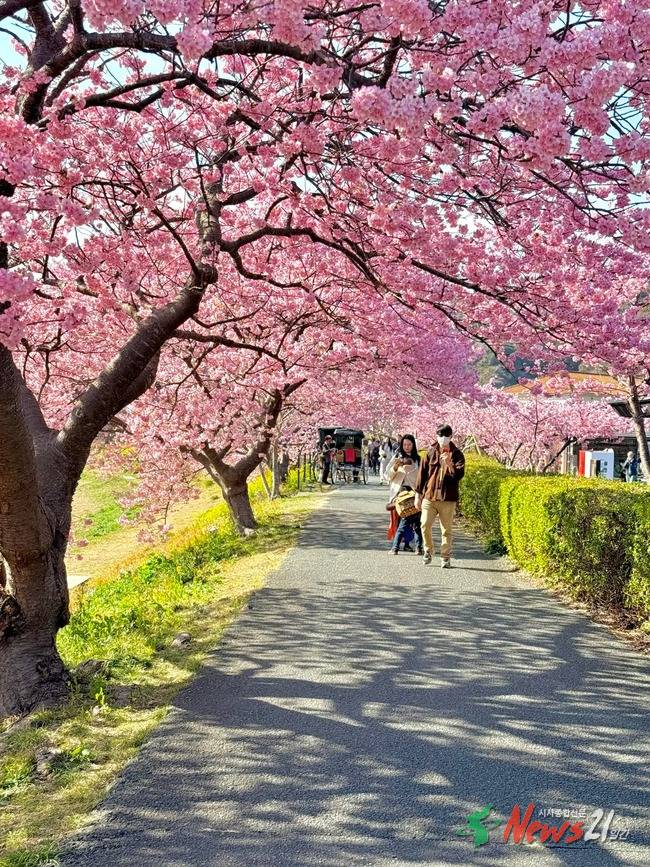 벚꽃과 유채꽃 시즌에는 온천과 꽃놀이를 동시에 즐길 수 있어 관광객에게 인기 있다.