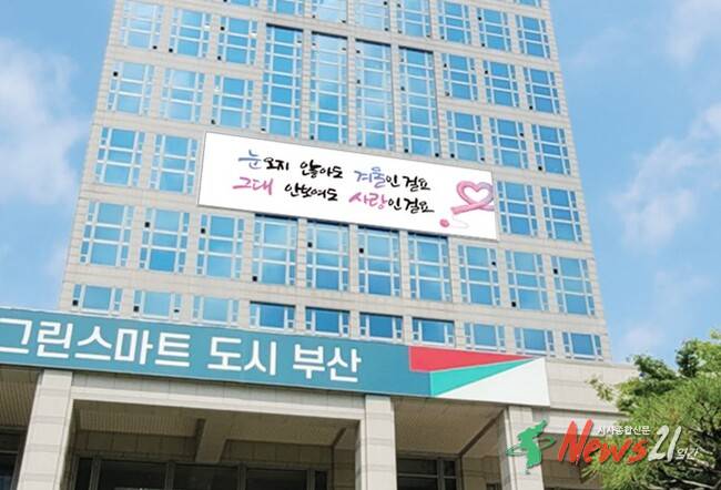 ▲ 사진=부산광역시부산시(시장 박형준)는 「2025년 부산문화글판 겨울편」에 선정된 문안을 이달부터 내년 2월까지 약 3개월간 시청사 외벽에 게시한다고 밝혔다.