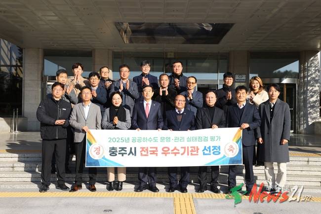충주시가 공공하수도 운영‧관리 실태 평가에서 전국 우수기관으로 선정되며 또 한 번의 성과를 거뒀다.시는 8일 청사 출입구에서‘2025년 공공하수도 운영‧관리 실태점검 평가 우수기관 선정’ 인증패 제막식을 열었다.이날 제막식은 기후에너지환경부에서 주관하는 공공하수도 운영‧관리 실태 평가에서 충주시가 우수한 점수를 받아 ...