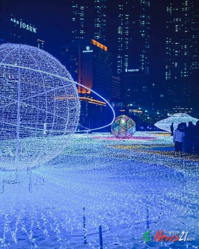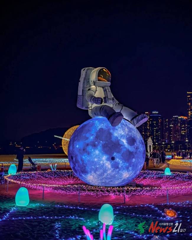 빛을 주제로 한 조형물과 테마 거리 연출로 야간 경관을 화려하게 꾸민다.