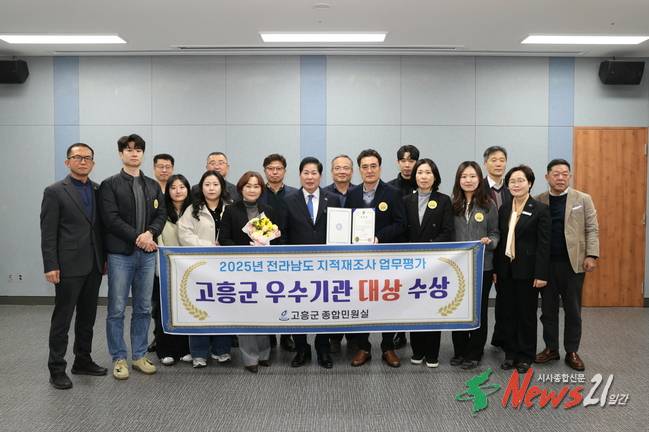 고흥군(군수 공영민)은 전라남도가 실시한 2025년도 지적재조사 업무평가에서 우수기관으로 선정돼 전라남도지사 기관표창 대상을 수상했다고 24일 밝혔다.
