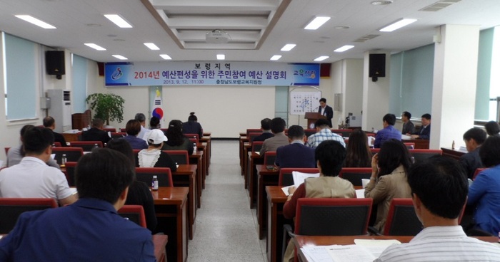 보령교육지원청(교육장 장형주)은 12일 오전 11시 보령교육청 제1회의실에서 보령주민참여예산위원, 학교운영위원, 학부모 등 80여명이 참석한 가운데 2013년 보령지역 주민참여예산 설명회를 개최했다.