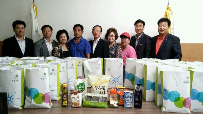 양주시 회천3동 발전협의회에서 민족 고유의 명절인 추석을 맞아 경기 침체로 어려움을 겪고 있는 관내 어려운 이웃에게 사랑의 위문품을 전달해 주위를 훈훈하게 하고 있다.