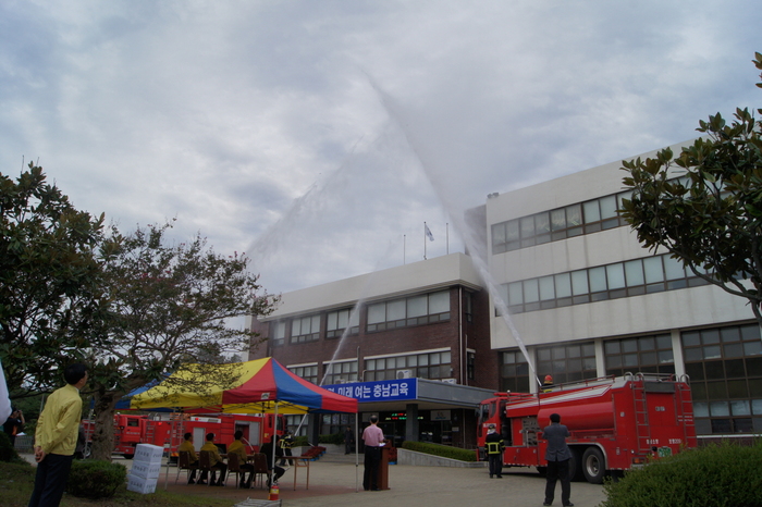 보령소방서(서장 채수철)는 2일 오후 3시부터 보령교육지원청에서 소방공무원과 보령교육지원청 자위소방대 등 50여명이 소방펌프차 및 구급차 등 소방차량 4대가 참여한 가운데 ‘2013년도 공공기관 합동 소방훈련’을 실시했다고 밝혔다.