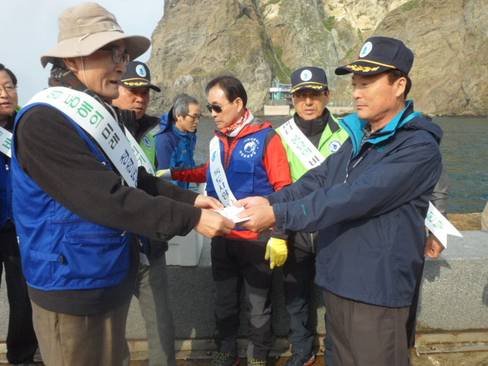 회원들은 홍해삼 방류행사에 참여했던 독도 방문객 300여명과 함께 반복되는 일본의 역사왜곡을 결코 좌시할 수 없다는 독도수호 결의를 다졌다.