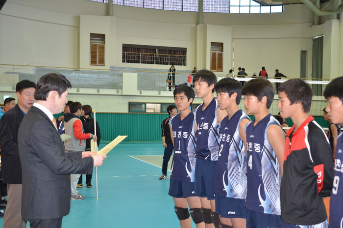 | ▲ 대천중학교 배구팀이 상장을 받는 모습 © 김흥식 | |