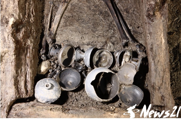 곽의 내부에는 인골이 온전한 채로 남아 있었으며, 유개고배(有蓋高杯, 뚜껑이 있는 굽이 높은 접시) 등 토기류도 11점이 부장되어 있었다. 목재의 치목과 결구방식, 매장방식 등 당시의 장례습속(葬禮習俗, 죽은 사람을 땅에 묻거나 처리하는 사회적 관례나 풍속) 연구와 함께 인골 연구 등 신라사 연구에 좋은 자료가 될 것으로 평가된다.