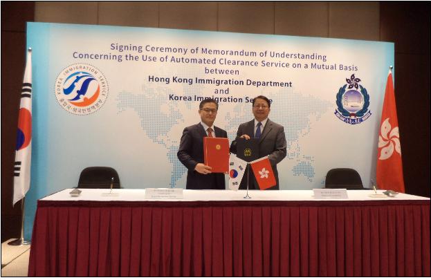지난 7. 30. 정동민 법무부 출입국․외국인정책본부장과 홍콩의 애릭 찬 입경사무처장이 한-홍콩 자동출입국심사 상호 이용을 위한 양해각서(MOU)에 서명한 후 상호 시스템 연계 작업을 거쳐 12. 12.부터 자동출입국심사 상호 이용 시스템을 운영하게 되었다.