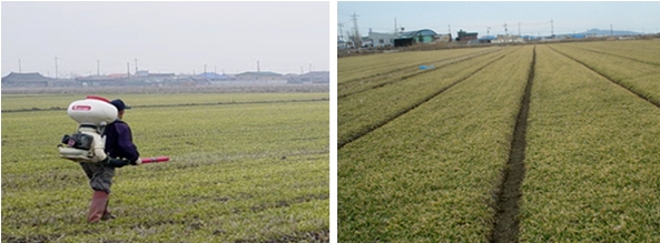 또한 냉이 등 광엽잡초가 많이 발생한 포장에는 벤타존 액제를 생육재생기에 뿌리고, 둑새풀 등 화본과 잡초가 많은 지역은 티펜설퓨론메틸입상수화제를 생육재생기 전에 뿌려준다.