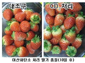 아크릴 용기(챔버)를 이용한 이산화탄소 처리기술은 수출용 품종인 ‘매향’과 ‘설향’ 딸기의 경도를 높여 유통 중에 무르는 증상이 적게 나타나고 부패도 늦춰 신선도 유지에 효과적인 것으로 나타났다.