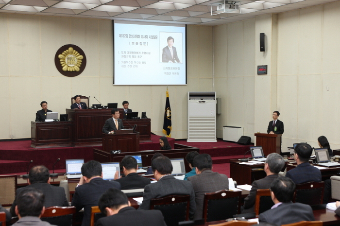 집행기관의 답변에 이어 실시한 보충질문에서 박재균 자치행정위원장은 “앞으로 안성시가 각종 규제개선과 더불어 주민들의 편의증진을 위해 보다 적극적인 행정을 펼쳐줄 것”을 요구하였다.