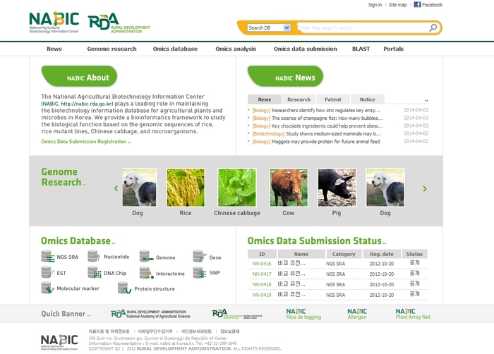농촌진흥청(청장 이양호)은 식물, 동물, 미생물 등의 유전체 정보를 제공하고 분석할 수 있는 ‘농생명 유전체 바이오 빅데이터 정보시스템’을 구축하고, (NABIC, 이하 나빅) 홈페이지(nabic.rda.go.kr)를 통해 대국민 서비스에 들어간다고 밝혔다.