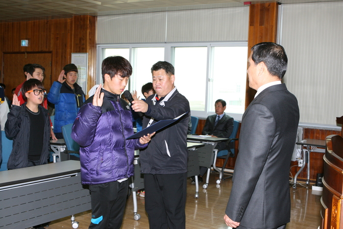 이날 다짐대회에는 육상, 역도, 유도 등 6종목의 출전선수, 학교장 및 지도교사, 운동부 코치 등이 참여해 승리를 결의했다.