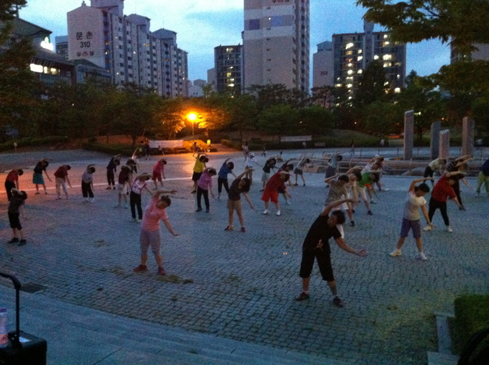 야간공원운동은 전문 강사가 건강 체조와 스트레칭, 근력강화운동 등 맞춤형 운동지도를 무료 제공한다.