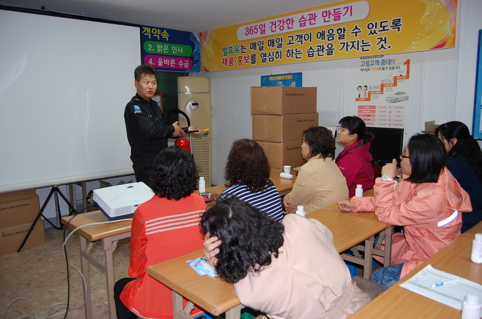 교육 내용은 소화기 사용법, 단독경보형 감지기 건전지 교체방법, 기초 응급처치법 등으로 이루어졌으며 야쿠르트 아줌마들이 평소 궁금했던 사항을 질문 받고 응답해 주는 등 화기애애한 분위기 속에서 교육이 진행되었다.