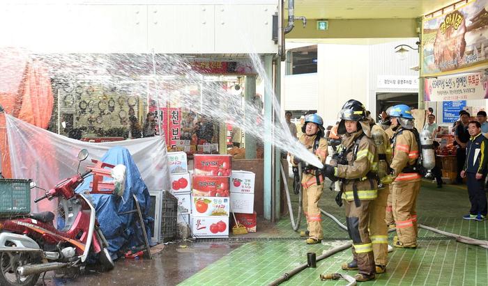 | ▲ 전통시장 재난사고 대비 소방 모의 훈련 실시 © 이정수 |