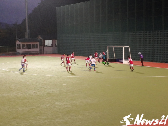 ▲   22일  충북 제천시 청풍면 청풍명월국제하키경기장에서 열리는 57회 전국종별 하키선수권대회, 야간 경기로 치러진 가운데 충남 아산중 (김태호 3학년)이 골을 성공 시키고 있다.   © 남기봉=기자
