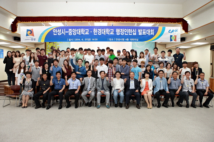 안성시는 지난 6월 27일 안성시청 4층 대회의실에서 안성시와 중앙대학교․한경대학교가 함께한 2014년 상반기 대학생 행정 인턴십 발표대회를 가졌다.