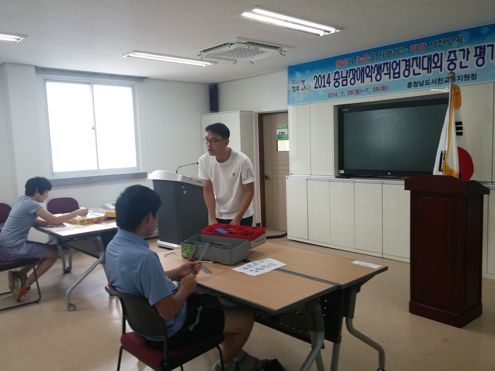 서천교육지원청(교육장 이길수)은 지난 28일부터 29일까지 이틀에 걸쳐 2014 충남 장애학생 직업기능 경진대회에 참가하는 학생의 업무수행 능력을 파악하여 부족한 부분을 보완하기 위한 중간 평가를 실시하였다.