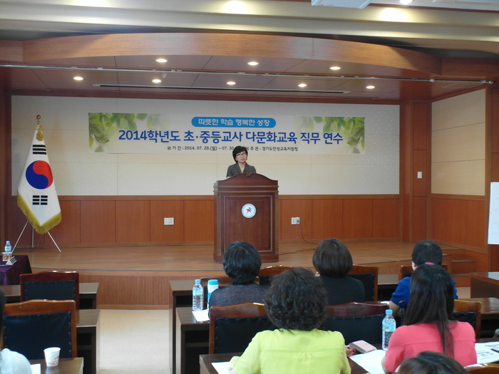 경기도안성교육지원청(교육장 김영신)은 2014년 7월 28일(월)을 시작으로 7월 30일(수)까지 3일 간 관내 다문화교육을 담당하고 있는 초중등 교사 34명을 대상으로 교수학습 역량강화를 위한 연수를 실시할 예정이다.