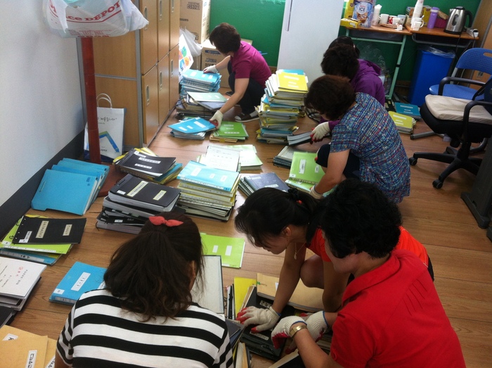 | ▲ 기록물지킴이 동아리 회원들이 기록물 정리하는 모습 © 김흥식 | |