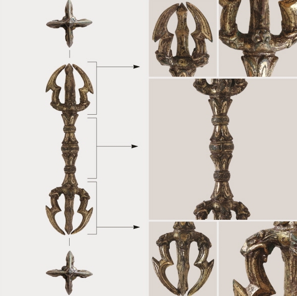 *금강저(金剛杵): 불교의식에 사용하는 불구. 제석(帝釋)의 번개에 붙였던 이름이었으나 점차 여러 신 또는 역사(力士)의 무기를 지칭하게 됐으며, 불교의식에서는 마음의 번뇌를 분쇄하는 보리심(菩提心)의 상징적인 의미를 지님